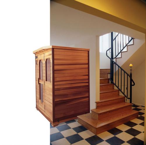 Windows for light and ventilation Halogen accent lights for mood and reading Keypad controlled temperature and timing Wireless remote-control High-quality AM/FM CD stereo with two-way speakers. Meets all requirements of the Canadian Electrical Code - ETLc Approved. Seats 2-3 people Dimension: 61"x 42 1/2" x 75" Power Usage: 1,900 w 120 v 15 amp | |
